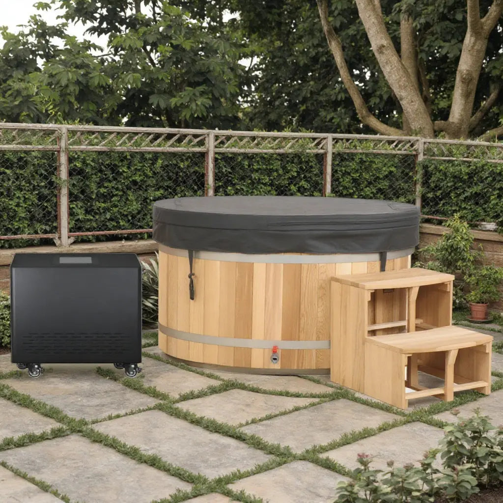 The Double Capacity Oval Tub is designed with your comfort in mind. This spacious ice bath allows two people to enjoy the therapeutic benefits of cold plunging simultaneously. Made from high-quality red cedar, the tub not only looks appealing but also provides natural insulating properties, keeping the water cold for longer periods. Because of its ergonomic shape, you and a partner can fully immerse yourselves, enhancing relaxation and recovery after workouts or a long day.